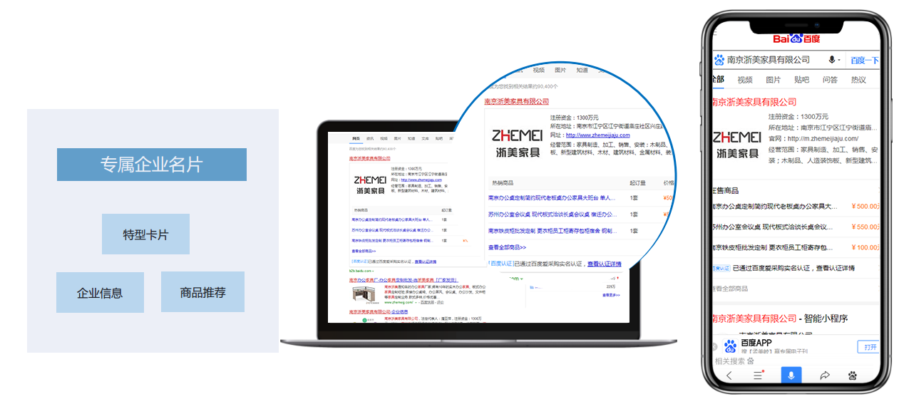 在百度搜索結(jié)果中,特性卡片展示,為商戶打造品牌效應(yīng),提升品牌曝光度和知名度!